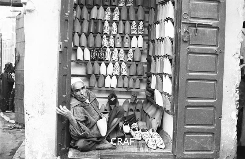 Ritratto di un venditore di ciabatte tipiche marocchine