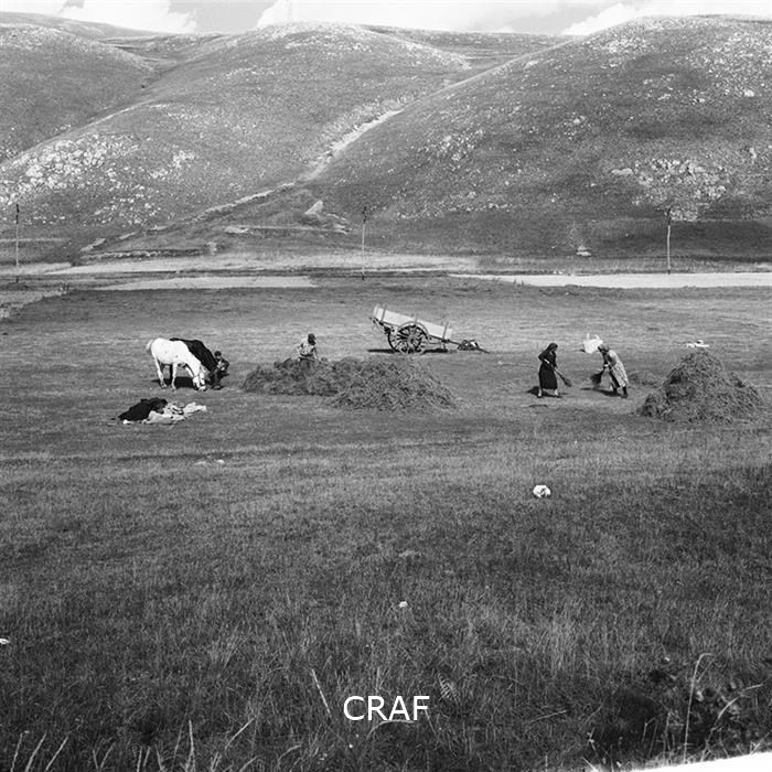 L'immagine riporta una scena di lavoro nei campi: la fienagione