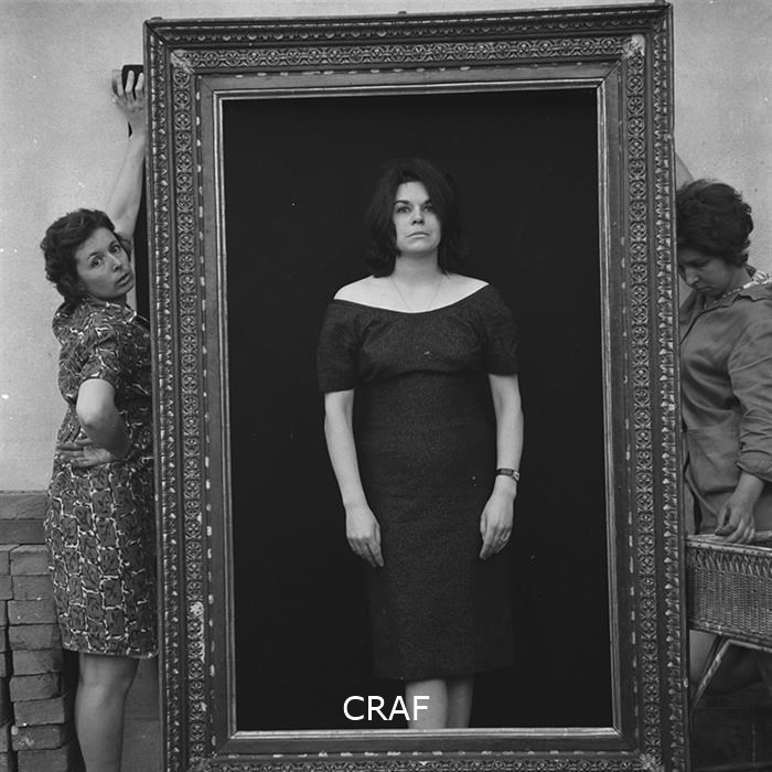 Ritratto di una donna all'interno di una cornice con sfondo nera sorretto da...