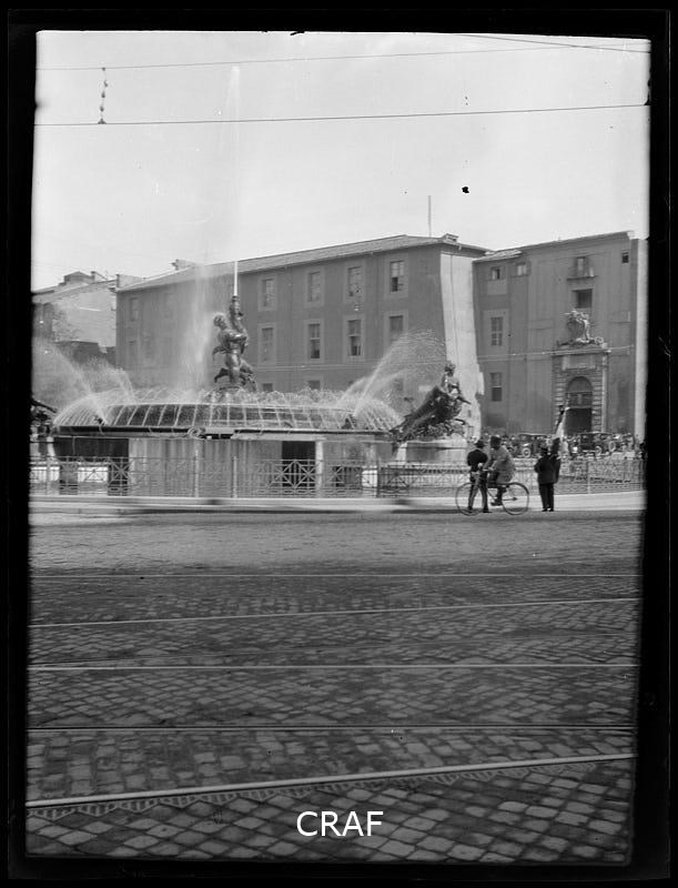 Veduta della Fontana delle Naiadi a Roma ripresa da Piazza Esedra (oggi Piazza...