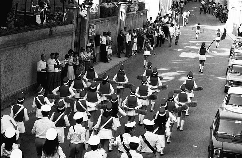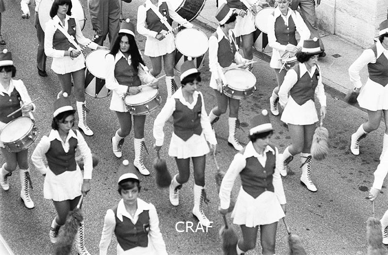 Scatto del passaggio in marcia di un gruppo di Majorette: alcune con il tipico...