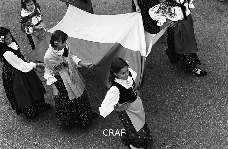 Ritratto di alcune bambine vestiti con abiti tradizionali friulani in sfilata...