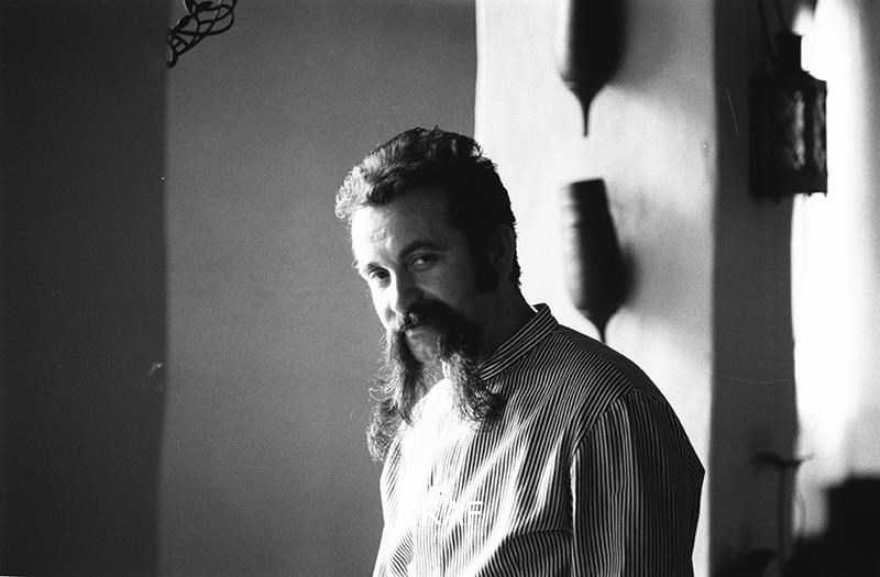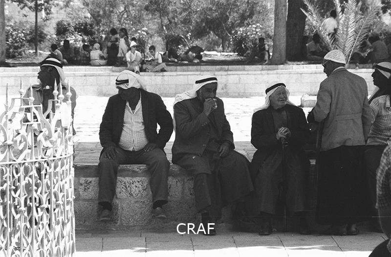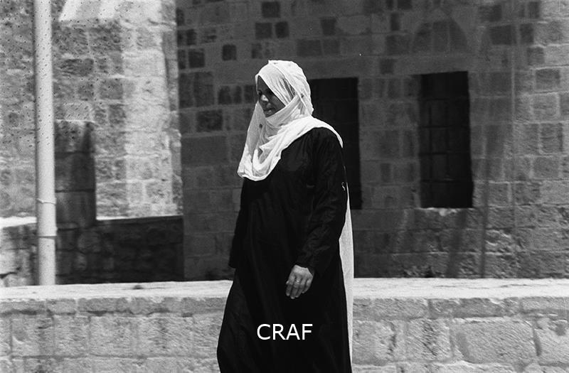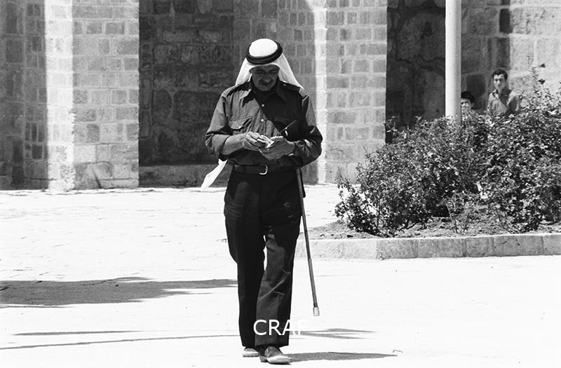 Un uomo marocchino con kefiah bianca in testa mentre cammina