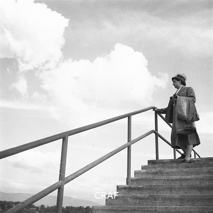 Ritratto di una donna in una scalinata sulle sponde del lago di Lemano o lago...