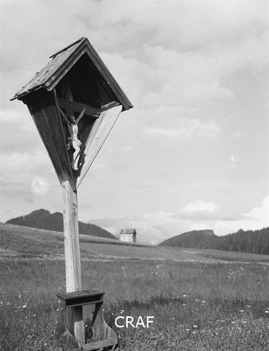 Nell'immagine un Crocifisso ligneo posizionato ai margini di un sentiero di...