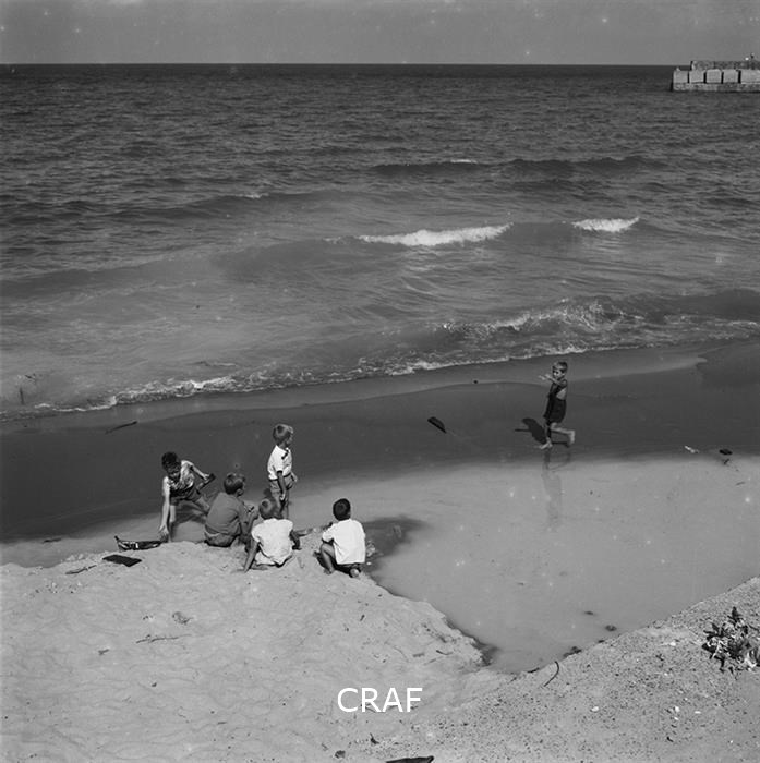Gruppo di bambini mentre giocano sul bagnasciuga