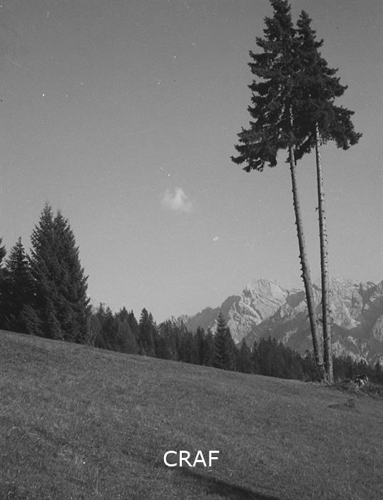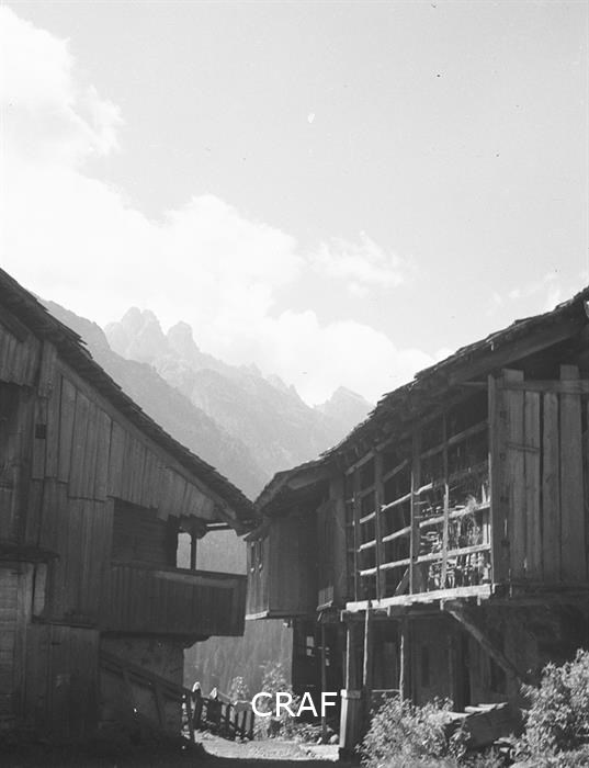 L'immagine propone uno scatto dei tipici fienili di montagna sullo sfondo del...