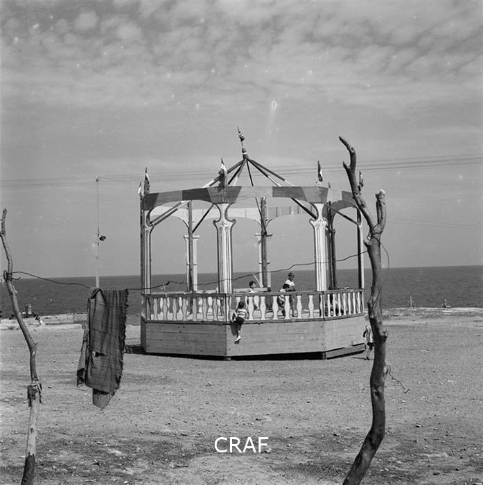 L'immagine propone la visione di un gazebo dismesso su una spiaggia usato dai...