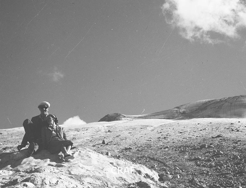 Ritratto di una coppia di ragazzi seduti su di un ghiacciaio, probabilmente il...
