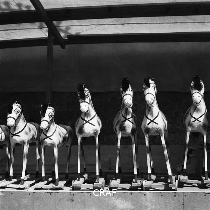 Immagine che ritrae una serie di cavalli giocattolo di probabile produzione...