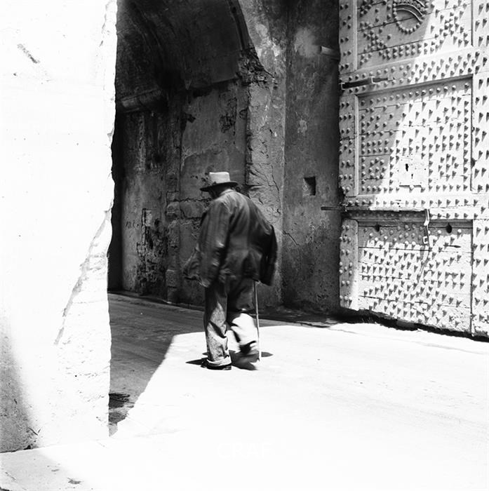 L'immagine ritrae un uomo mentre cammina ed attraversa un portale
