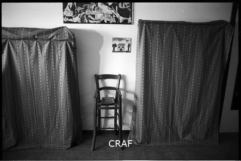 Composizione di oggetti in un interno. Al centro si vede un vecchio seggiolone...