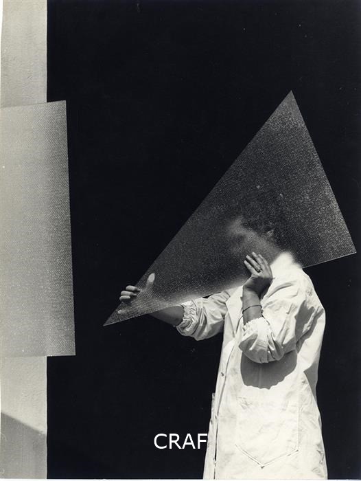 L'immagine ritrae una vetraia mentre trasporta un vetro triangolare