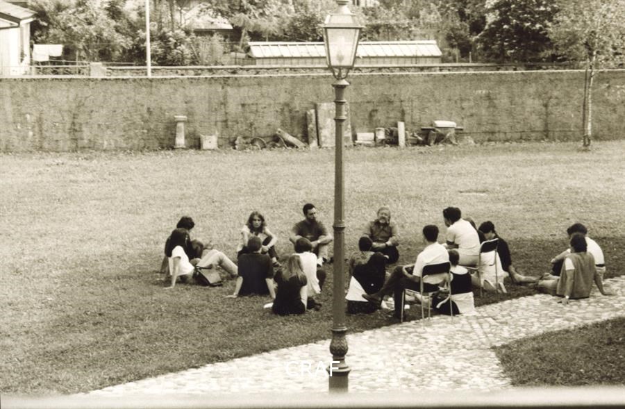 Momento conviviale per gli studenti del corso FSE Cultura della Fotografia 1996/97 organizzato dal CRAF a Villa Ciani..
