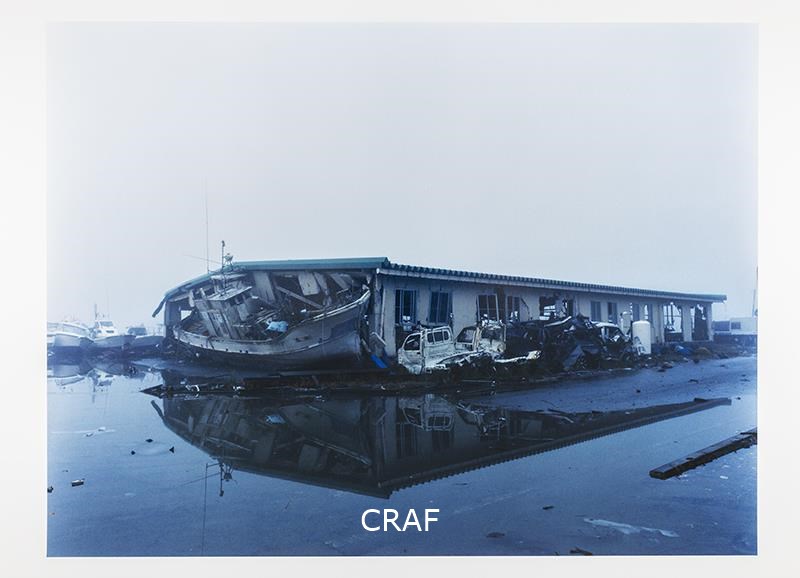 Officina nautica con un peschereccio incastrato nella facciata dopo lo tsunami