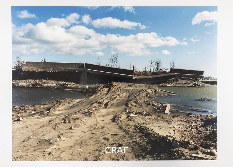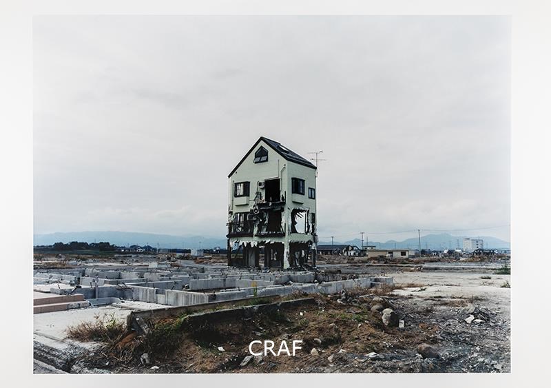Veduta di un'area devastata dallo tsunami, al centro lo scheletro di un edificio