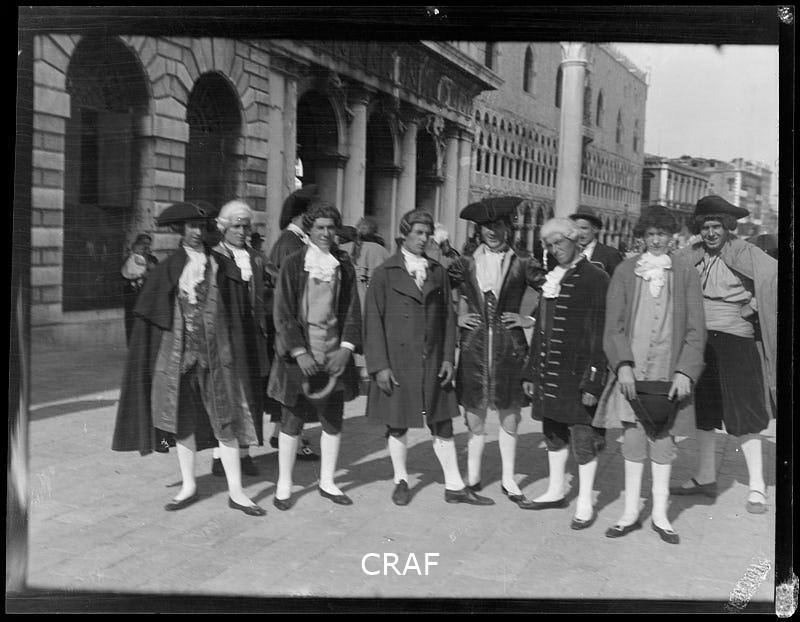 Ritratto di figuranti in costume del XVIII secolo sul Molo San Marco.