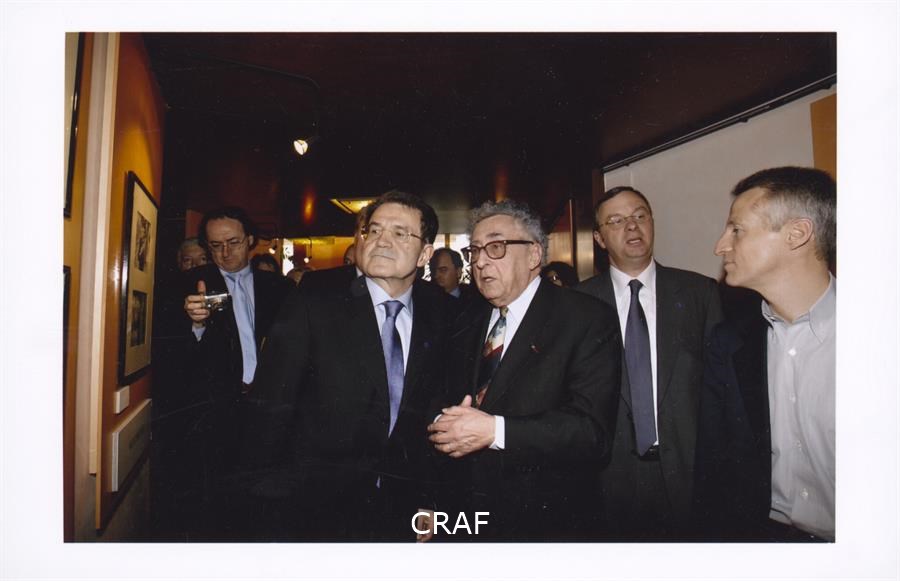 Il Presidente della Commissione Europea, Romano Prodi, visita a Trieste la mostra Qui Europa promossa dal CRAF e curata da Charles Henri Favrod. Sono presenti anche Riccardo Illy, Alessandro Tesini e Giampiero Blarasin