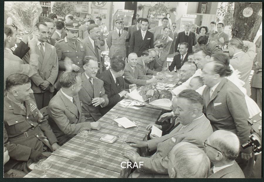 Foto di gruppo a tavola con Alcide De Gasperi.