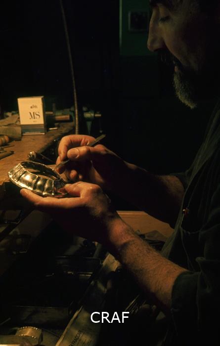 Giuseppe Gomba ritratto mentre esegue un lavoro di argenteria
