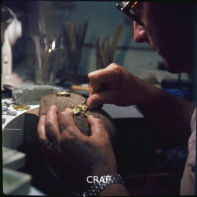Ritratto di Sergio Mazzola mentre esegue lavori di oreficeria