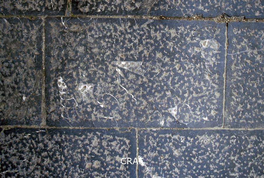 Dettaglio dei fossili nella pavimentazione del centro di Udine