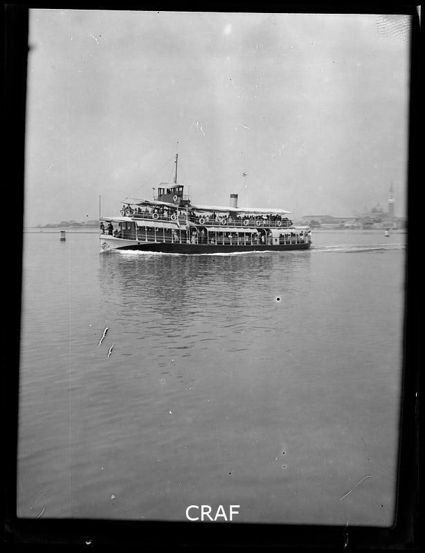 Veduta del Bacino di San Marco a Venezia attraversato da un vaporetto. Sullo...