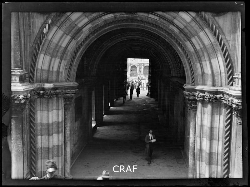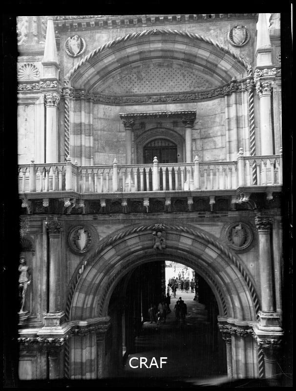 Veduta dell'Arcata Foscari in Palazzo Ducale a Venezia ripresa dalla Scala dei...