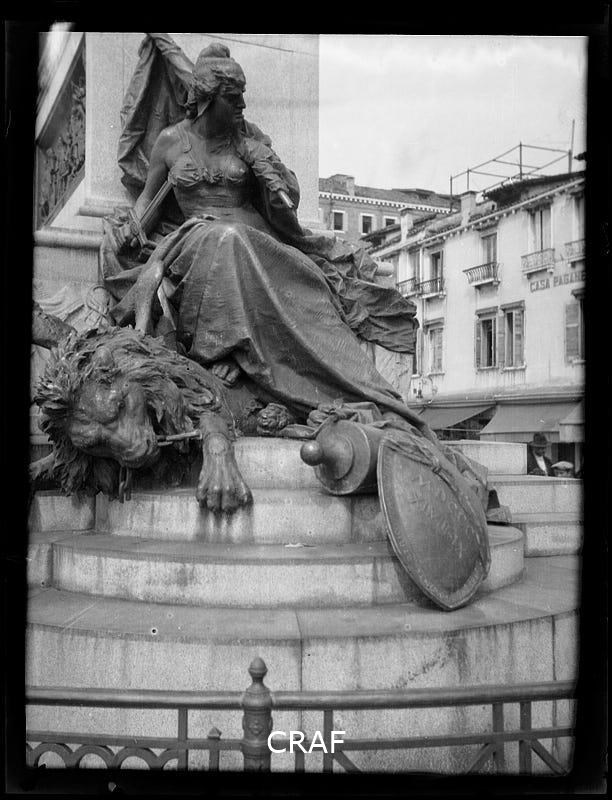 Venezia soggiogata: particolare del Monumento a Vittorio Emanuele II a Venezia