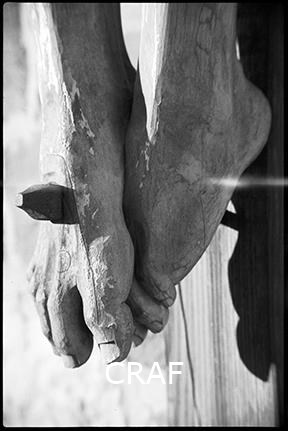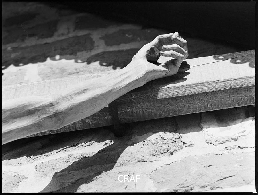 Dettaglio del crocifisso ligneo sulla facciata della chiesa di Santo Spirito