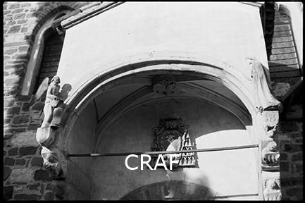 Dettaglio del protiro pensile sulla facciata della chiesa di Santo Spirito