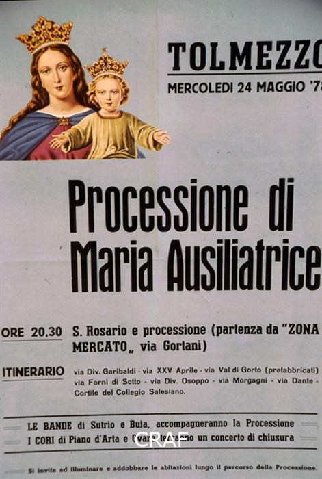 Dettaglio del manifesto della processione di Santa Maria Ausiliatrice a Tolmezzo