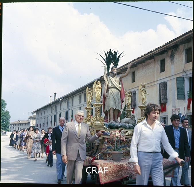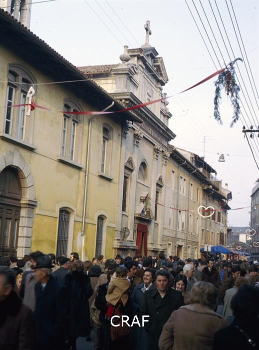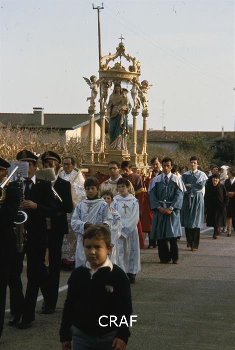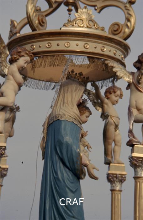 Dettaglio del corteo in processione con la statua della Madonna al centro