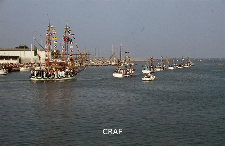 Il corteo di barche esce in processione dal porto di Grado