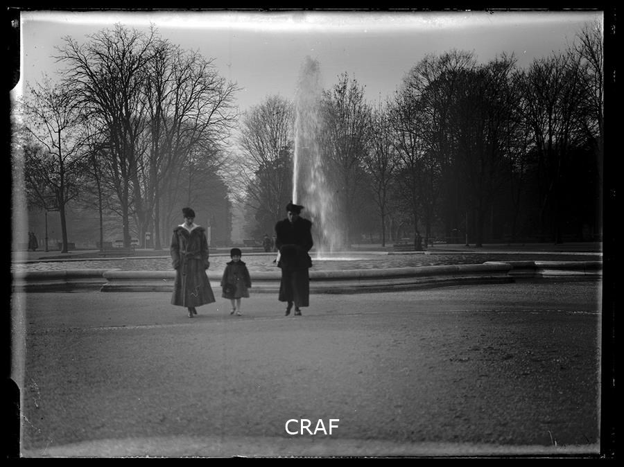 Ritratto di due donne e una bambina mentre passeggiano nei giardini di una...