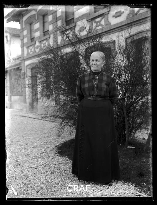 Ritratto di donna anziana nel giardino di una villa