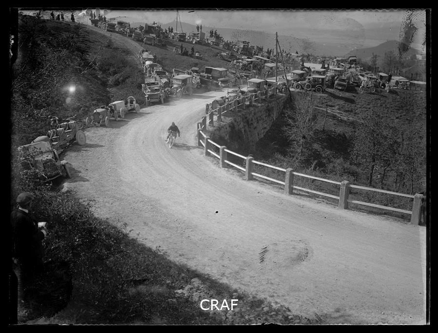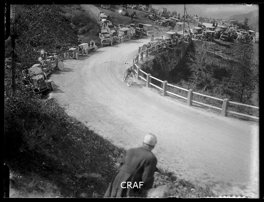 Passaggio di una motocicletta durante una gara in montagna