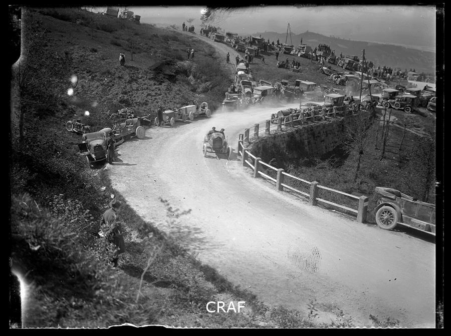 Passaggio di un automobile durante una gara automobilistica in montagna