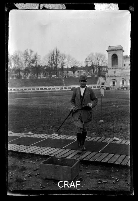 Ritratto a figura intera di un uomo con in mano un fucile