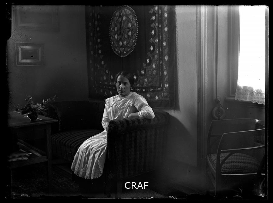 Ritratto di donna, probabilmente una domestica, seduta sul divano del soggiorno...