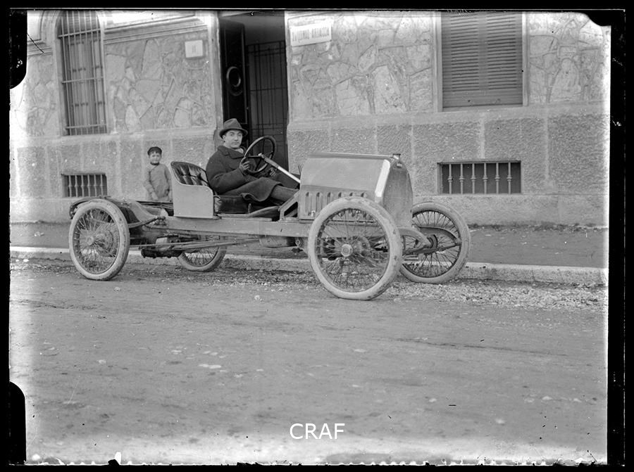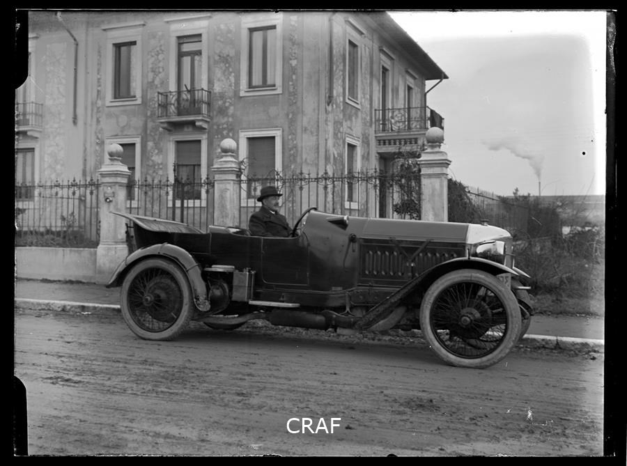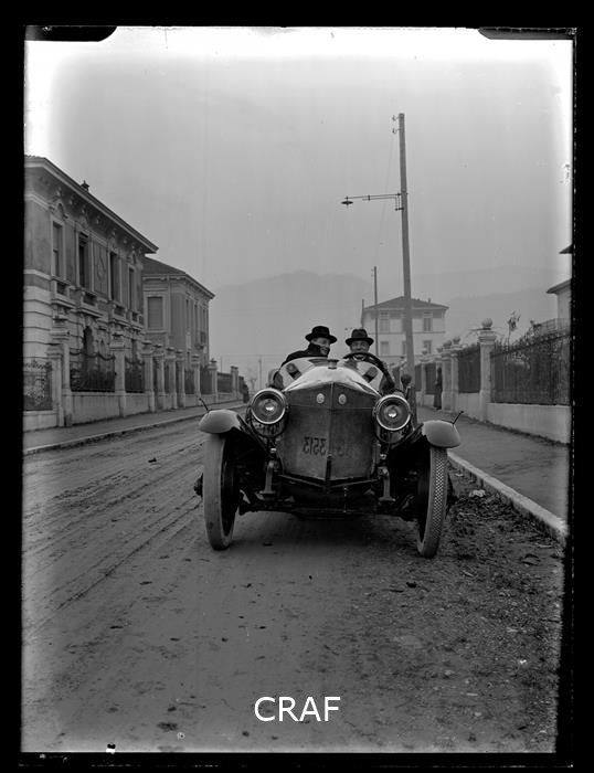 Ritratto di due uomini al volante di un automobile probabilmente utilizzata per...