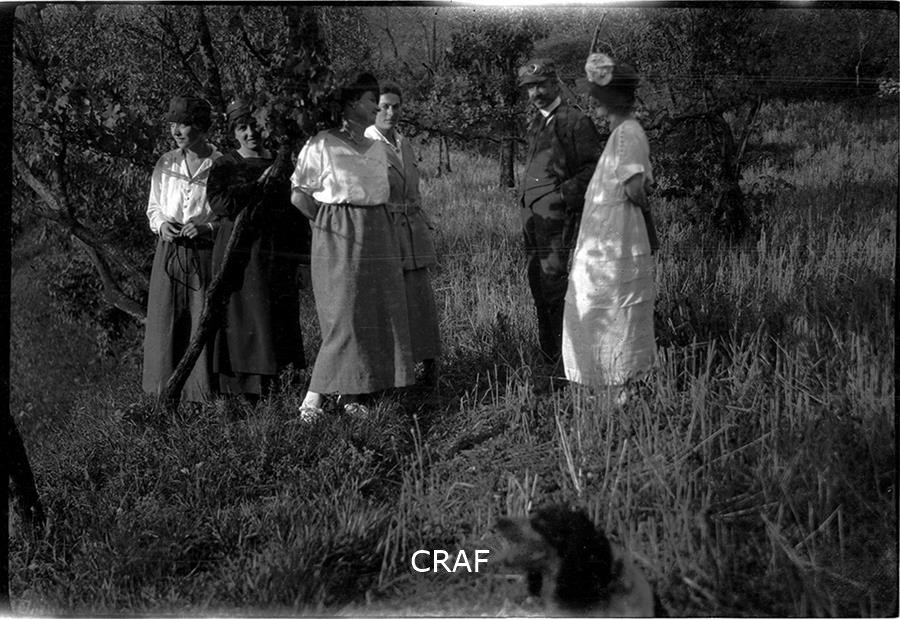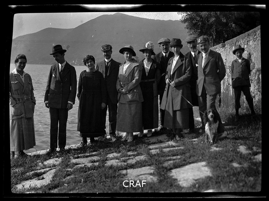 Ritratto di gruppo, uomini e donne, sulla riva di un lago