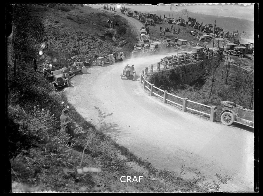 Automobile in corsa durante una gara automobilistica su strada montana