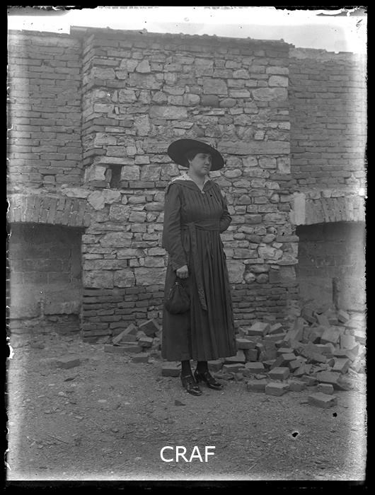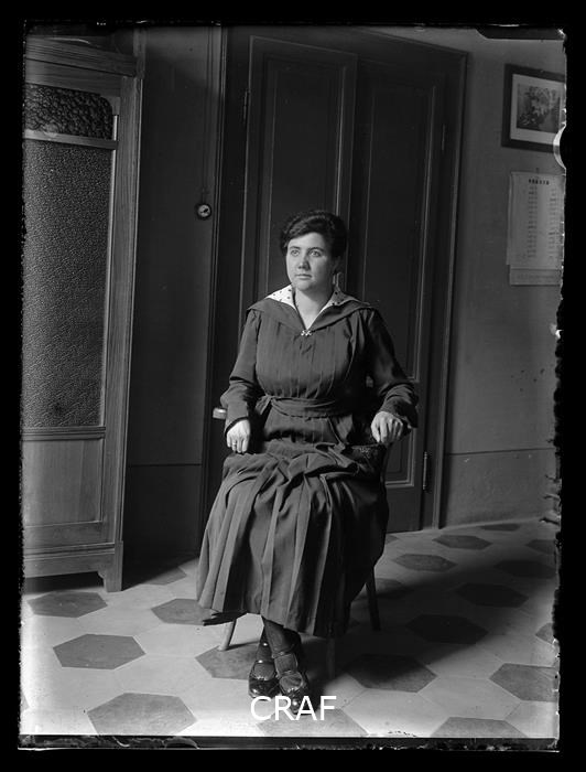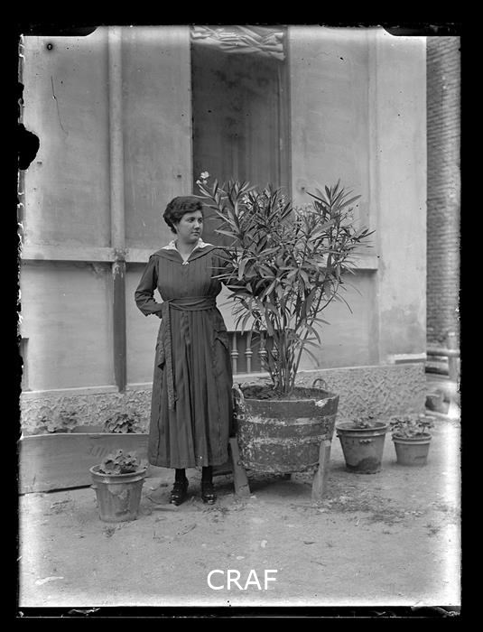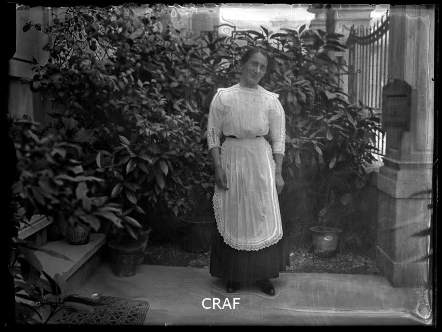 Ritratto di donna, probabilmente una domestica, all'ingresso di una villa