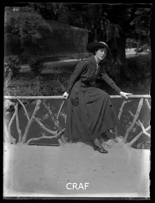 Ritratto di donna seduta su di un parapetto
