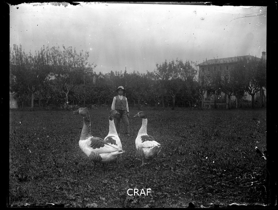 Ritratto di bambino e tre oche