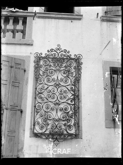 Particolare di grata decorativa in un finestra chiusa di una villa