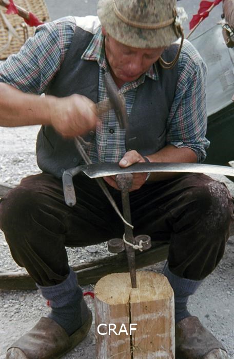 Ritratto di un uomo che lima una falce.