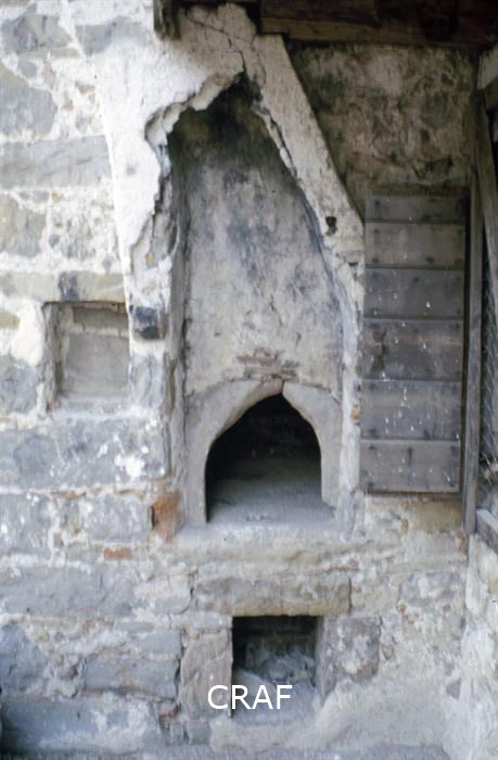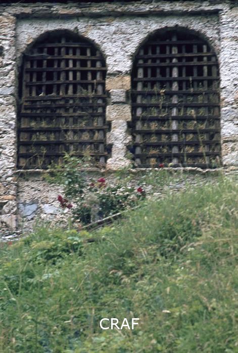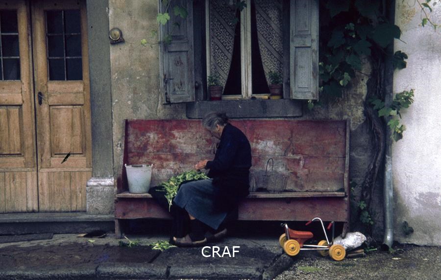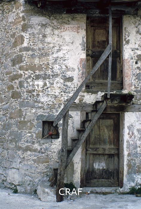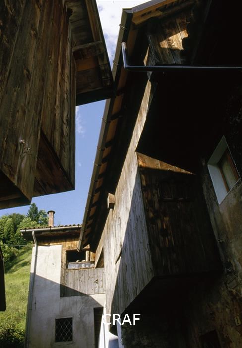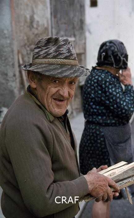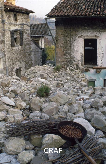 Scorcio di un borgo con paiolo di castagne in basso sui sassi.