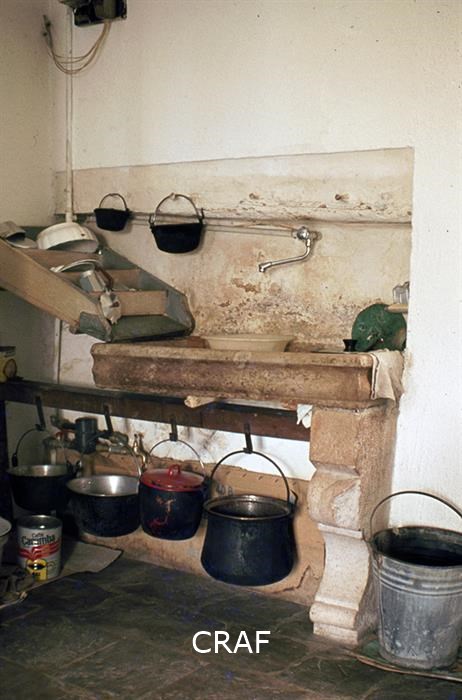 Angolo con lavandino di pietra.